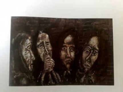 Motivika se navezuje na čas upora. Druga svetovna vojna. Ilegalci. Podtalno delovanje. Tajni sestanki. Žalovanje in ovijanje v obup ter molk, pokoli talcev in žalovanje. Odhod na zadnjo pot. Pripovedi so izrazito osebnoizpovedne. Vsi prizori so zelo figuralni in postavljeni pred linearno ozadje. Linije so spontane in preproste. Obrazi oseb so otrpli, z izbuljenimi ali zaprtimi očmi in spominjajo na maske. Razpoloženje je izrazito mračno, barvna lestvica pa omejena na sive, rjave in črne tone z belimi poudarki.