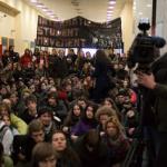 … kljub varnostnikom na vratih izveden teach in na Filozofski fakulteti, sindikat žerjavistov podprl zasedbo ploščadi pred bojzo …